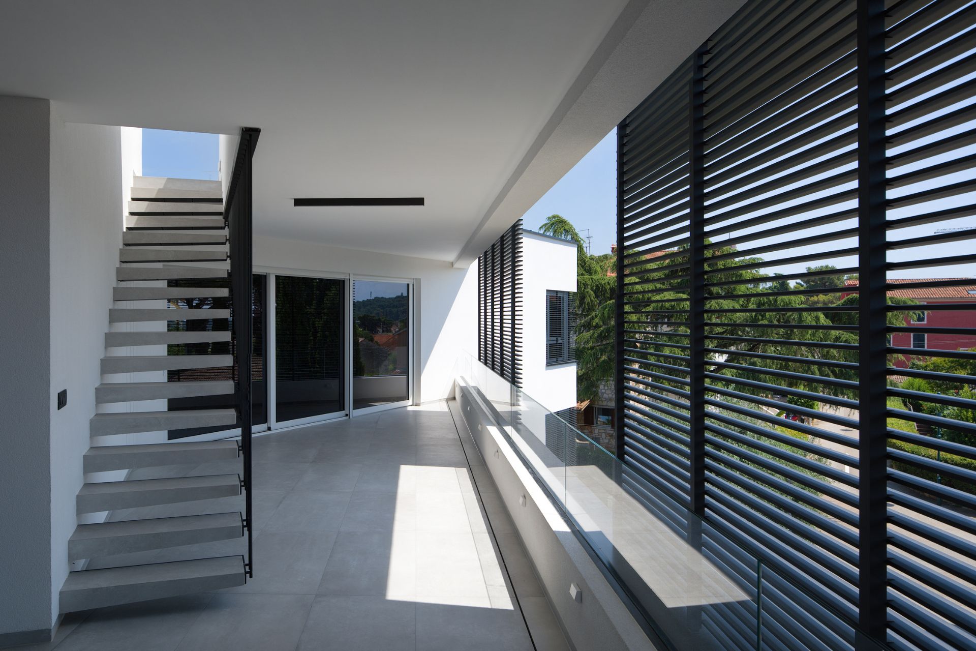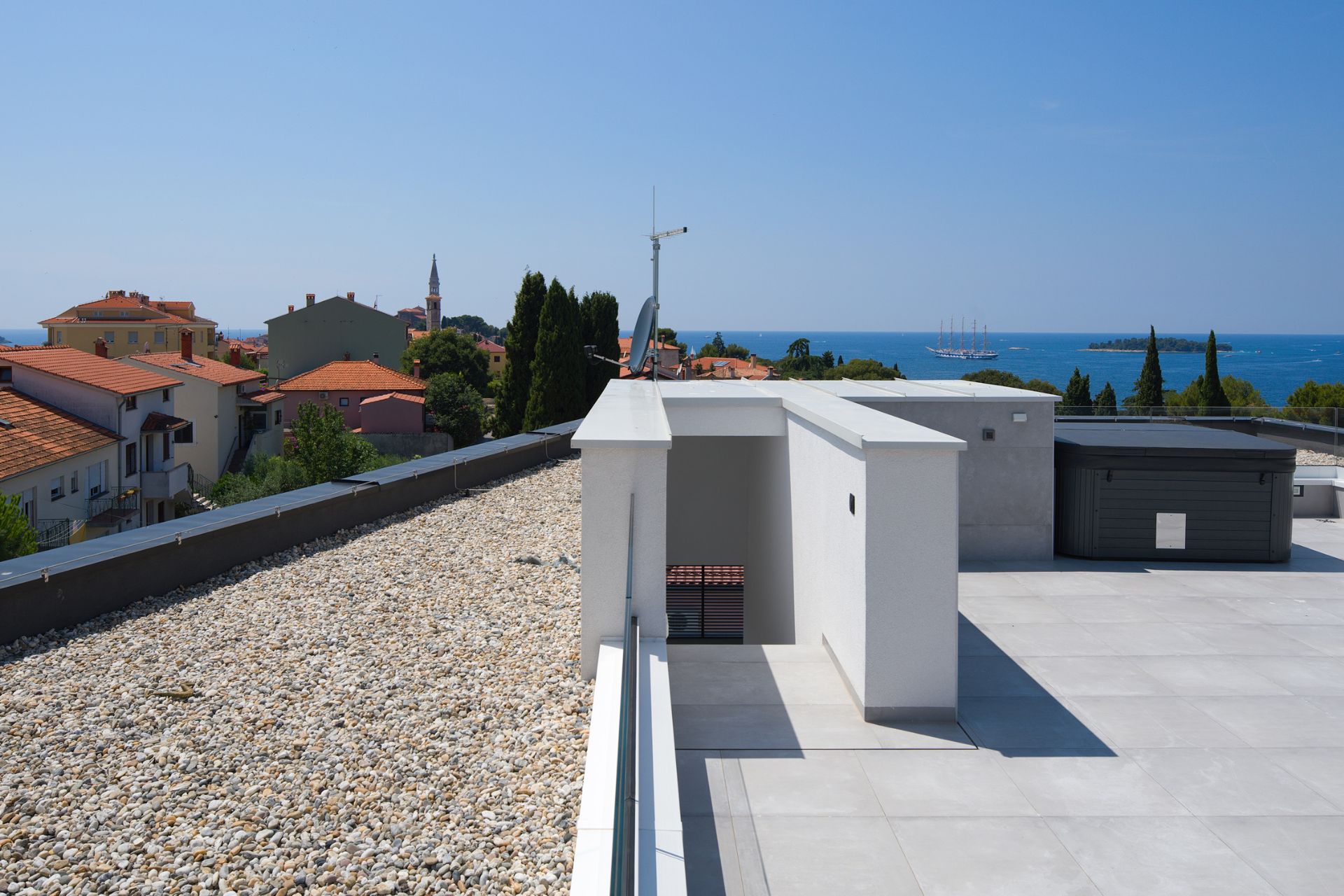 In an urban corner where two streets enclose an irregularly shaped plot, a house emerged, one that doesn’t run from its limitations, albeit turning them into an architectural advantage. Every apartment is meticulously positioned to insure peace, light and view – towards the trees, towards the Old Town, towards the sea. At its top, roof terrace opens the horizon.